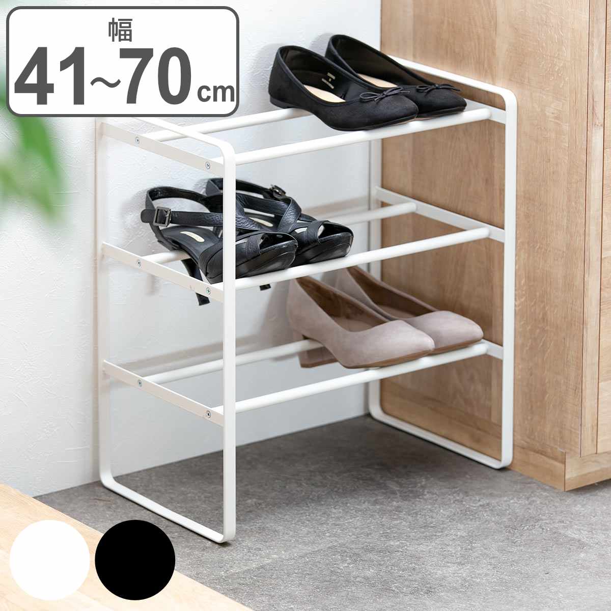 価格: 4,104円 レビュー評価:4.63 レビュー数:8 ※ラッピングについて、詳しくはこちら ▼商品名▼ 伸縮シューズラック3段 ▼品名説明▼ シンプルでスタイリッシュなシューズラック♪ シューズを置く部分が約41?70cmまで伸縮可能◎最大に伸ばせば 女性靴なら16足、男性靴なら12足収納できます♪使いたいスペースに 合わせて長さを調節できるので便利ですよ!同じ商品なら連結が 可能なので、上に積み上げて2段にすれば収納力もアップですよ◎ シンプルなホワイトと、シックな雰囲気のブラックの2種類です♪ ※ご注意 素材感や色合いの表現には環境により色合いが異なる場合があります。 予めご了承ください。★伸縮シューズラック フレーム3段 ★ 使いたいスペースに合わせて調節ができるシューズラック♪ ・Spec 商品名 伸縮シューズラック フレーム3段 素材 スチール(紛体塗装) サイズ 約w41?70 (更新日時:2019/04/17 09:45) Supported by 楽天ウェブサービス |